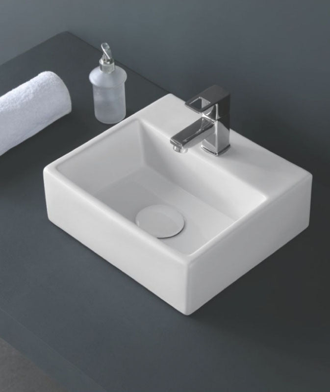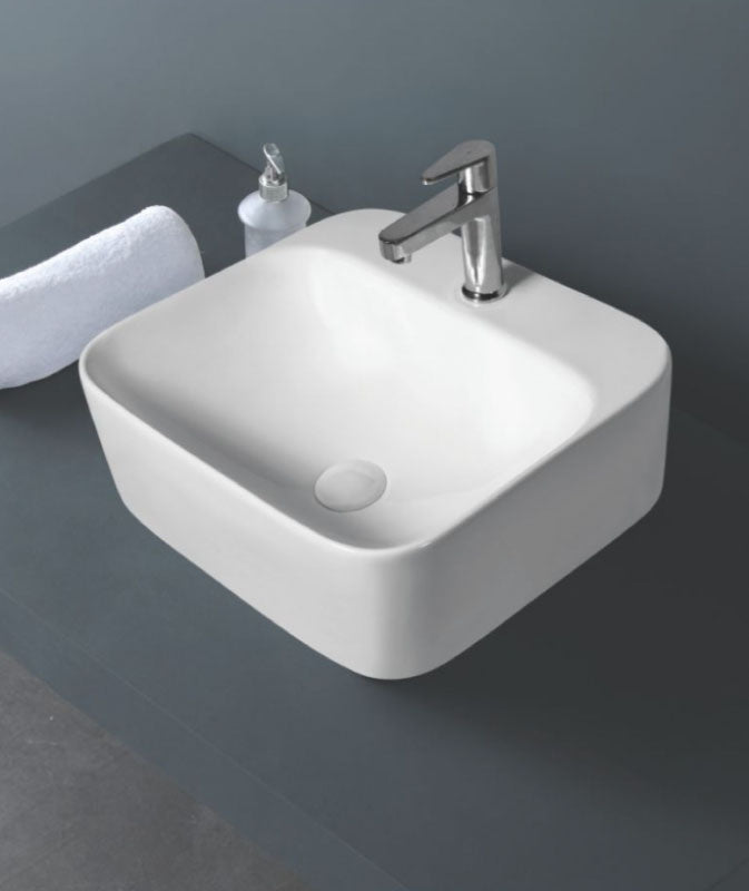 Versatile Design: Introducing the "Rodes" Table Top & Wall Hung Basin by Orynbath, crafted from ceramic in classic white, offering dual installation options for added versatility in design.
