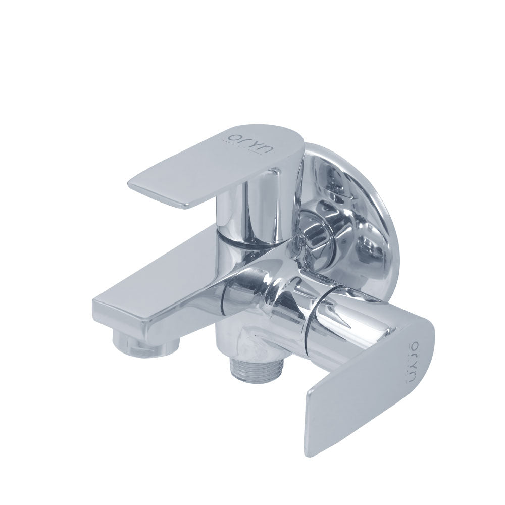 【Material & Finish】: Oryn's Oasis 2 in 1 bib taps are cast with solid lead-free 100% pure Brass material for maximum durability. These two way bib cocks come with glossy, highly-reflective Chrome Finish. Handle/lever is also manufactured in 100% Brass with anti-corrosion & rust proof qualities. 【Application Area】: Two way Bib taps are designed for wall mou ...