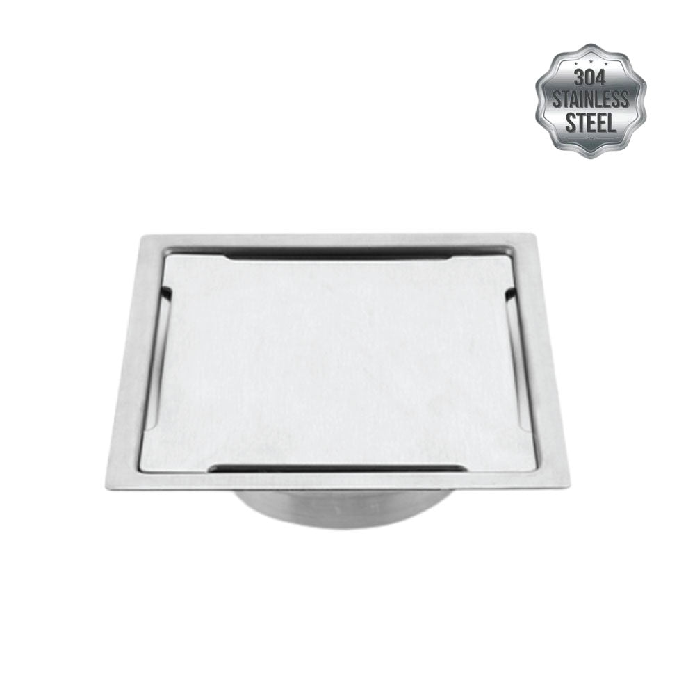 Material & Finish:-AISI 304-Grade Stainless Steel Construction-Non-Corrosive & Rust-Resistant Qualities-Brushed Matte Chrome Finish for Modern Appeal-Flat Edges for Easy Installation-Check square cutout pattern of drain coverApplication Area:-Suitable for Drain Pipes 4” and Above-Indoor & Outdoor UseFunctionality:-Modernized Floor Trap Design-Easily Re ...