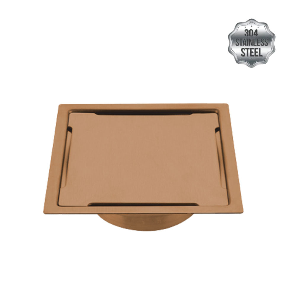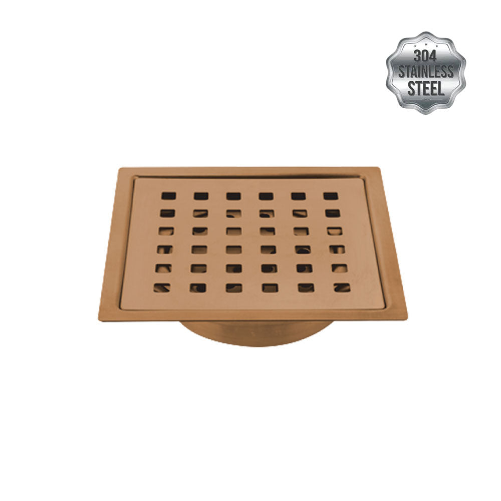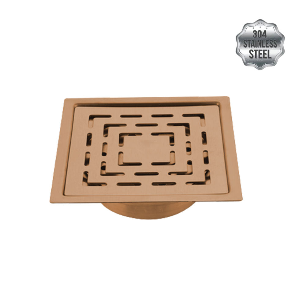 Material & Finish:-AISI 304-Grade Stainless Steel Construction-Non-Corrosive & Rust-Resistant Qualities-Brushed Matte Rose Gold Finish for Modern Appeal-Flat Edges for Easy Installation-Check square cutout pattern of drain coverApplication Area:-Suitable for Drain Pipes 4” and Above-Indoor & Outdoor UseFunctionality:-Modernized Floor Trap Design-Easily ...